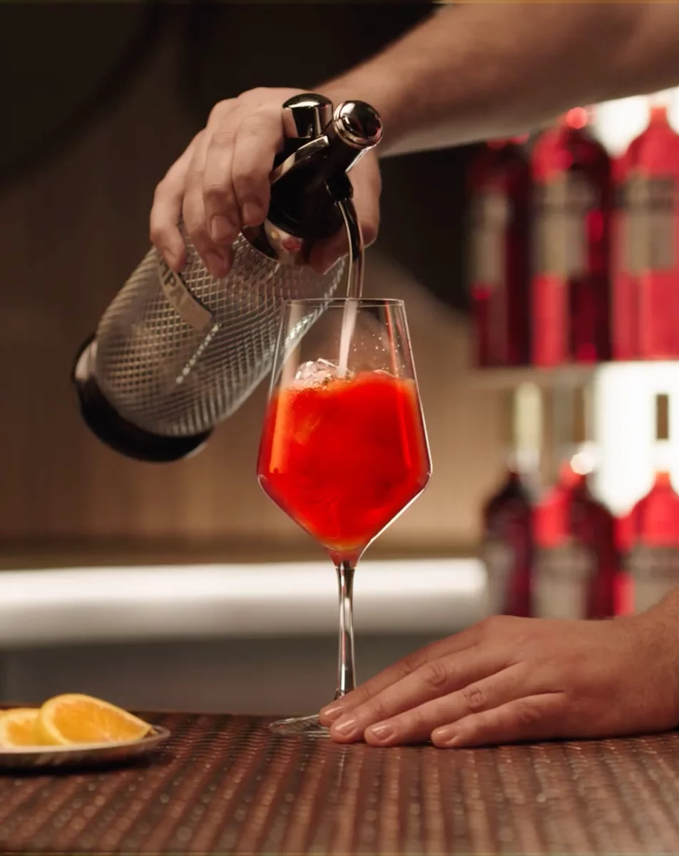 Try the Campari spritz. How to make the ideal Aperol Spritz. Its a simple mixture of either Campari or Aperol Campari is less sweet and more bitter than Aperol which we prefer club soda water prosecco ice cubes and an orange slice.